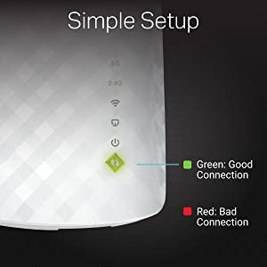 The RE200’s LED lights up in red where your router’s Wi-Fi signal is weak and green where it’s strong so you can quickly find the range extender’s perfect setup spot.