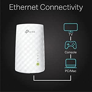 The range extender also acts as a wireless bridge through its Ethernet port, making it possible to connect a wired device, such as an Xbox, PlayStation, PC, Mac, smart TV or Blu-ray player, to your Wi-Fi.