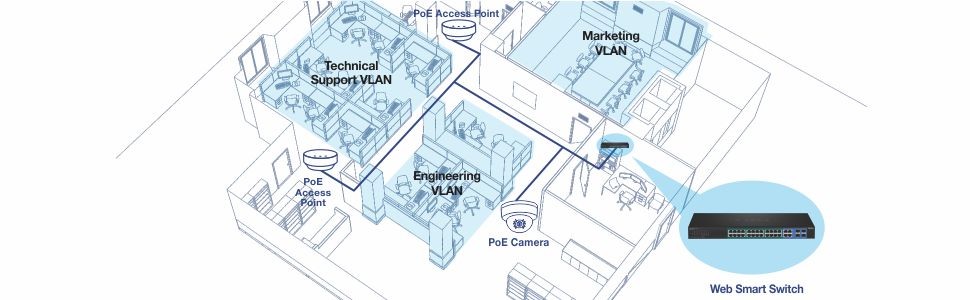 Web Smart ManagementProvides an easy-to-use web-based GUI management for reduced switch configuration complexity and offers a combination of SMB management features for easy deployment. |