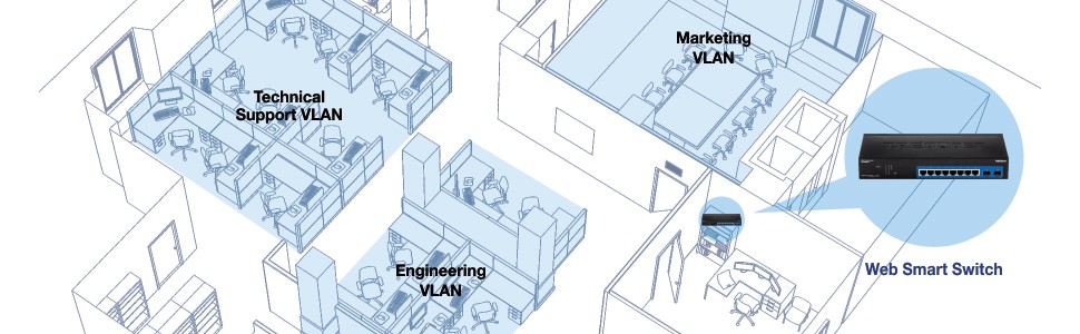 TRENDnet’s Gigabit Web Smart Switch series offers advanced L2+ features with enhanced traffic management controls to meet the evolving demands of SMB networks. This rack mountable IPv6-ready managed switch comes with an intuitive web-based interface. Advanced managed switch features include LACP to increase bandwidth between switches by grouping ports together, VLANs for segmenting and isolating virtual LAN groups, QoS for traffic prioritization, port bandwidth controls, and SNMP monitoring, making this a powerful solution for any SMB network. Improve voice performance by isolating and prioritizing VoIP traffic from normal data traffic with an easy-to-use voice VLAN feature.