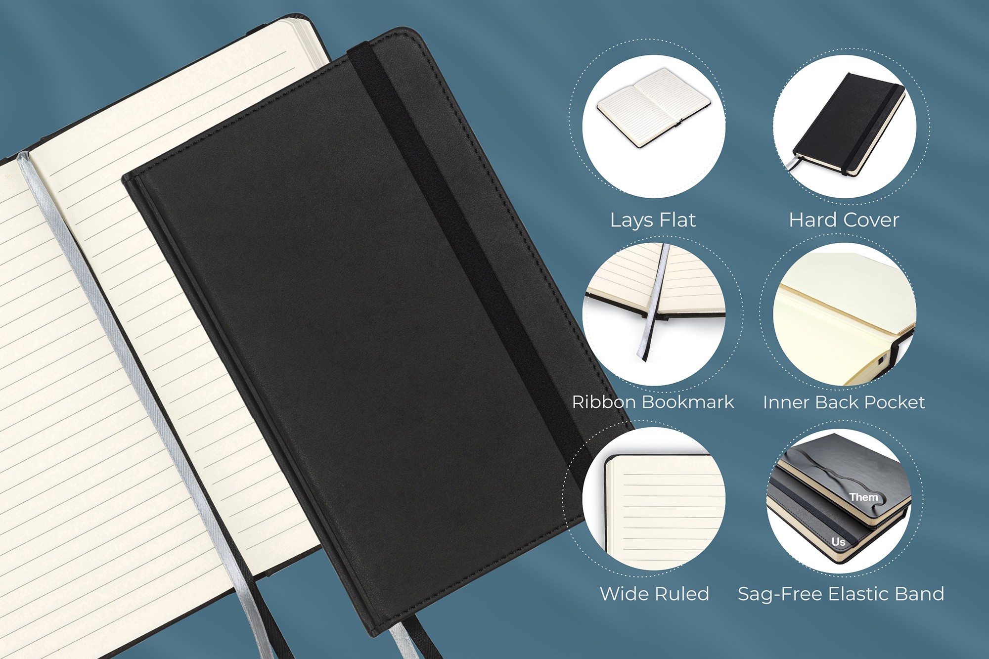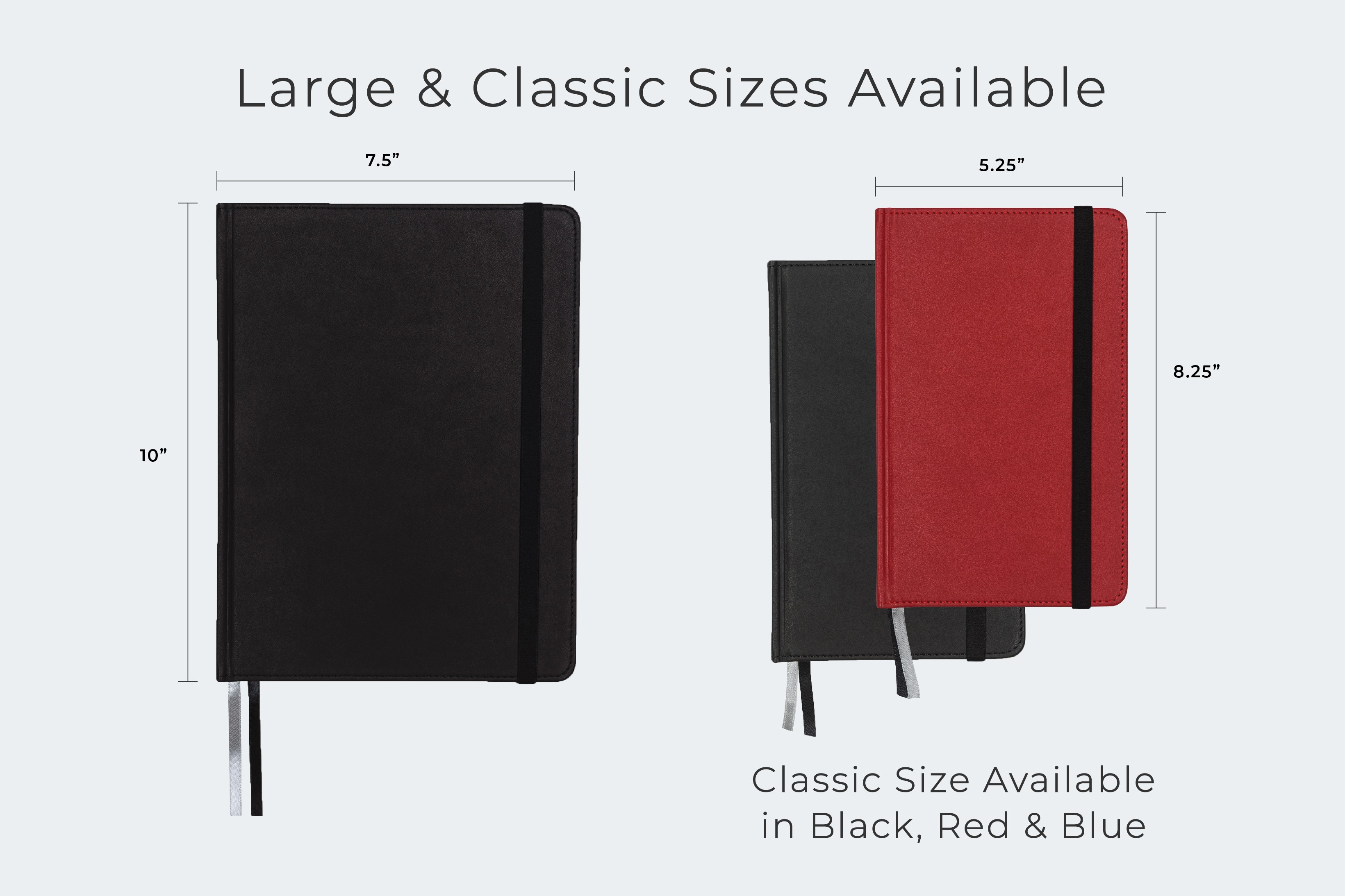 Classic journals include 2 ribbon bookmarks, back interior pocket for storage, and wide ruled sheets.