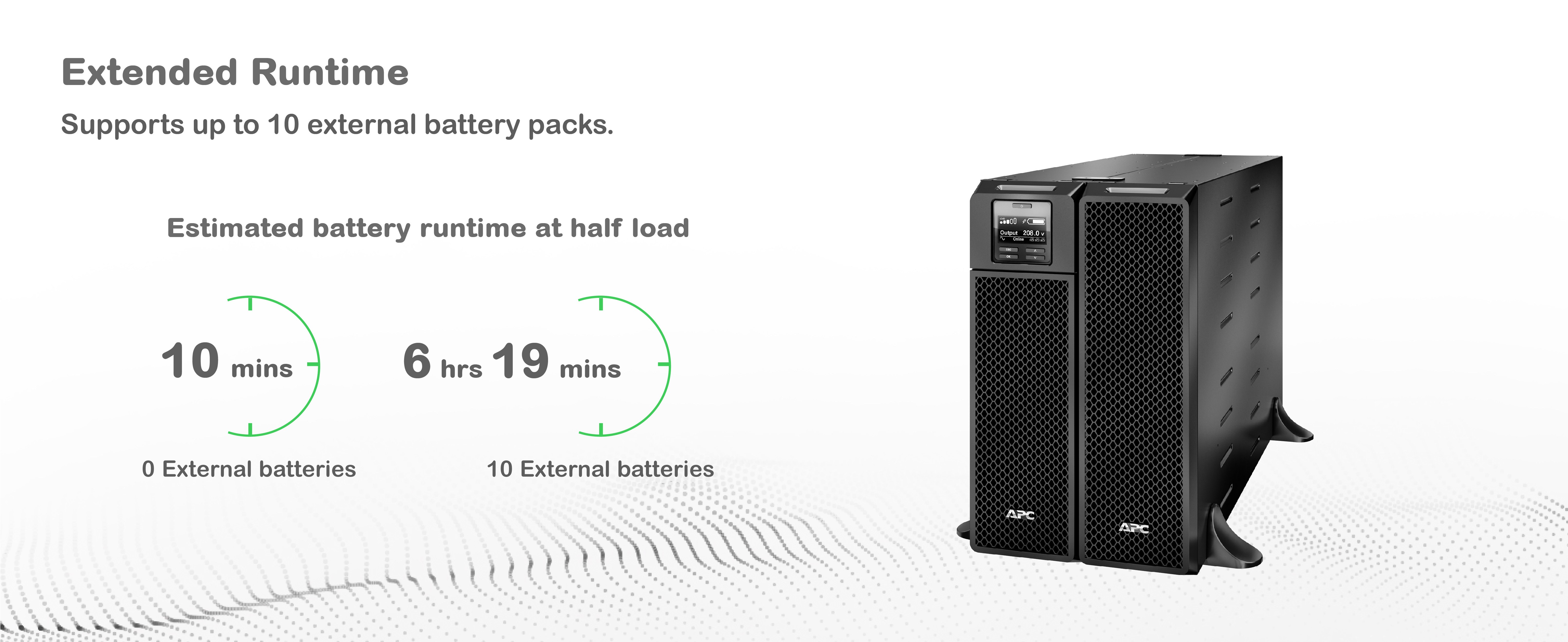 Extended runtime options Connect up to 10 external battery packs for extended runtime needs |