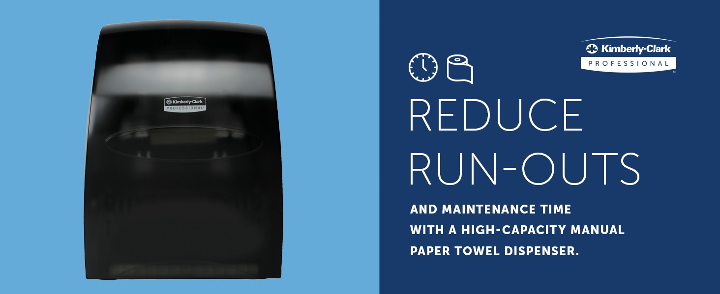 Style:Towel Dispenser Reduce maintenance time and run-outs with a high-capacity washroom towel system. The Sanitouch Hard Roll Paper Towel Dispenser is a reliable and efficient hand-drying system that's perfect for your workplace. Whether you have a retail location, office or high-traffic location, your washroom guests will only touch the towel they use, thanks to the touch free, one-at-a-time dispensing system. This wall mount dispenser is made of durable plastic and comes in an attractive shade of black, called Smoke, so it will go with any washroom décor. Compatible with Kleenex and Scott Brand Hard Roll towels with a 1.5" core, by providing high-quality towels in your washroom, you'll increase your maintenance efficiency.