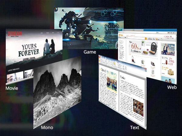 ViewSonic’s unique ViewMode™ feature offers “Game,” “Movie,” “Web,” “Text,” and “Mono” presets. These presets enhance gamma curve, color temperature, contrast and brightness to deliver an optimized viewing experience for different screen applications.