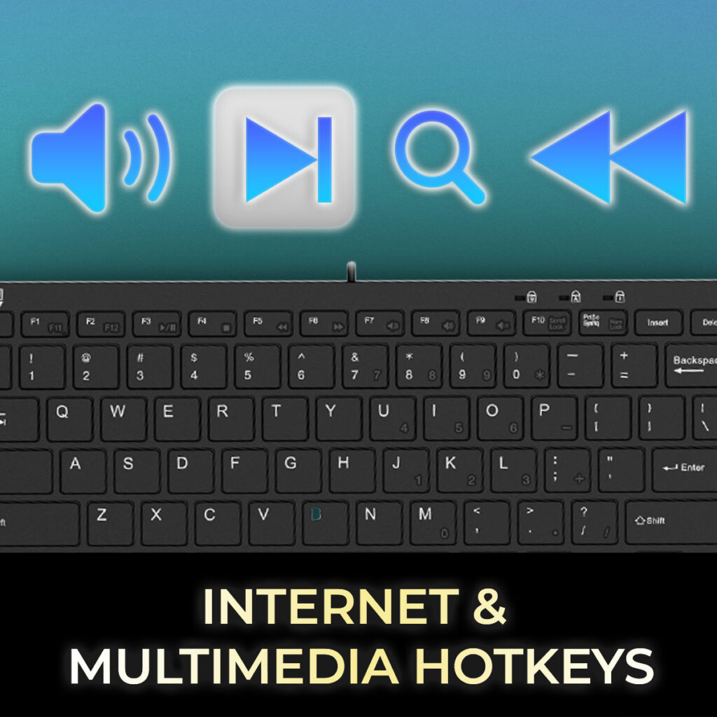 Control your media player with just one touch using the built-in Multimedia Hotkeys for easy access to your favorite media or website.
