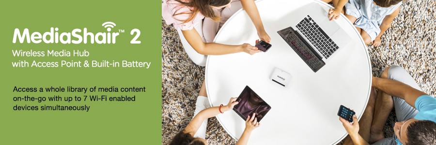 Great news for Mac users- the MediaShair 2 Hub has built-in support for Mac storage! With drivers for NTFS, FAT32 and HFS+ the MediaShair 2 Hub it is compatible with nearly all pre-formatted Windows and Mac storage drives. There’s no need to format your external drive for MediaShair 2, just unplug it from your computer and take it with you for wireless file sharing on the go!