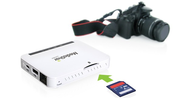 Ever run out of space on your camera while on vacation, or want to show/share photos while stopping for lunch? Just pop your camera’s SD card into the MediaShair 2 Hub and your family can instantly see photos on their devices, or share them via Facebook, email, etc. If your SD card is full, simply connect a flash drive or external hard drive to the MediaShair 2’s USB port and transfer the photos to make space for more.