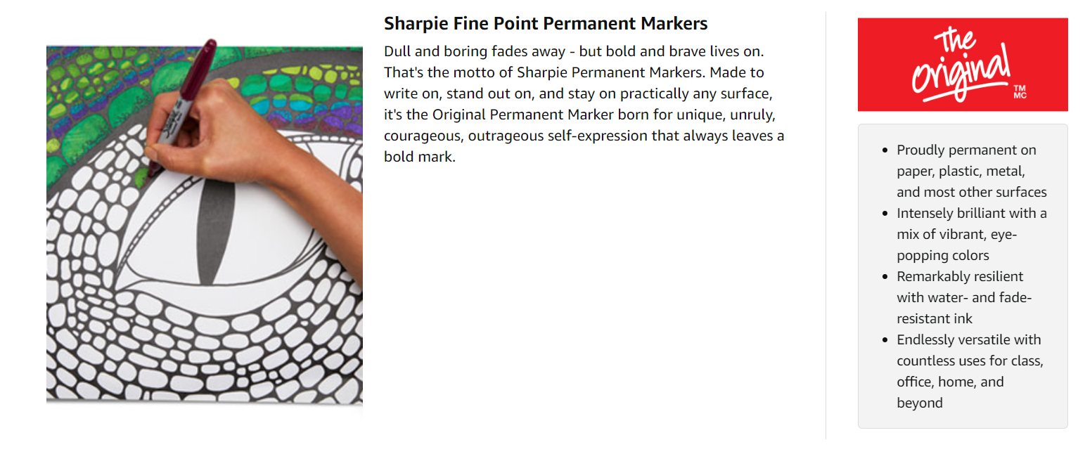 Vivid to the max, Sharpie markers put an end to dull and boring, igniting your imagination to create drawings and visuals packed with a level of depth, detail, and brilliance that simply can't be matched.
