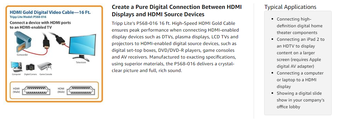 Perfect for home theater installations, the P568-016 supports full 1080p resolution as well as Ultra High Definition (UHD) resolutions up to 3840 x 2160 (4K x 2K) to accommodate the latest high-definition devices. It also has up to 10.2 Gbps of bandwidth capacity.
