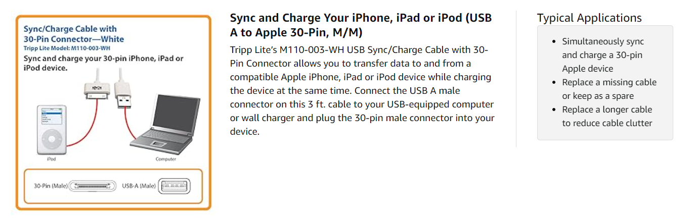 The M110-003-WH is MFi-certified, so it’s made specifically for iPhone, iPad and iPod devices. Use with iPhone (iPhone, 3G, 3Gs, 4 and 4s), iPad, iPad 2, iPad (3rd generation), iPod Touch (1st through 4th generation), iPod classic and iPod nano (1st through 6th generation).