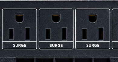 Surge protected outlets safeguard your connected equipment from damage during an AC power surge or spike.