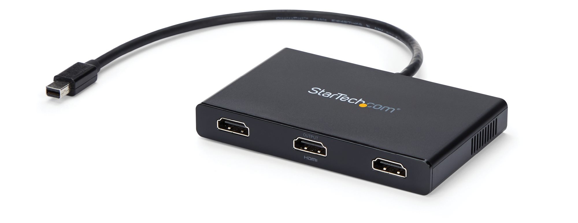 This MST hub lets you connect three HDMI monitors to your Mini DisplayPort computer. MST works on any Windows® device that supports DisplayPort 1.2, such as models of the Lenovo™ Think Pad® and Microsoft® Surface™. When connected to earlier revisions of DisplayPort, such as DP 1.1 the MST hub acts as a video splitter.