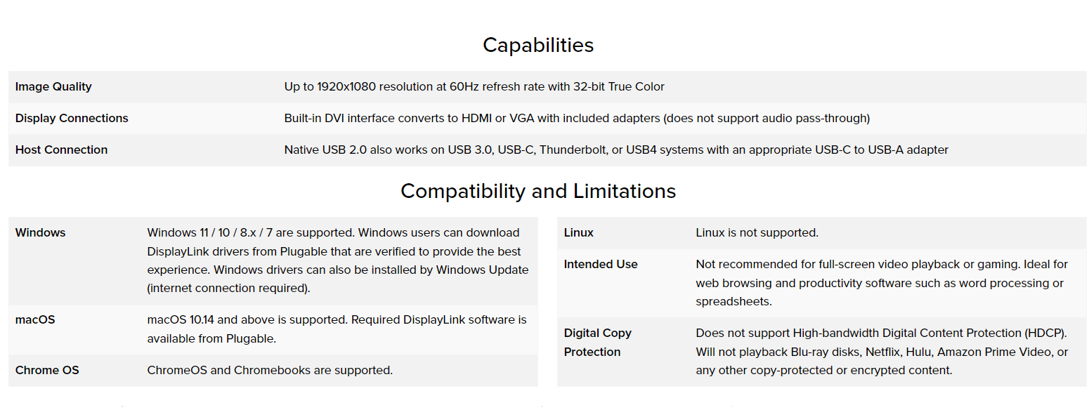 Multiple DisplaysConnect multiple USB 2.0 display adapters to your computer using this multi display adapter to expand your screen space by up to six additional 1920x1080 displays in Windows (up to four additional displays in macOS). |