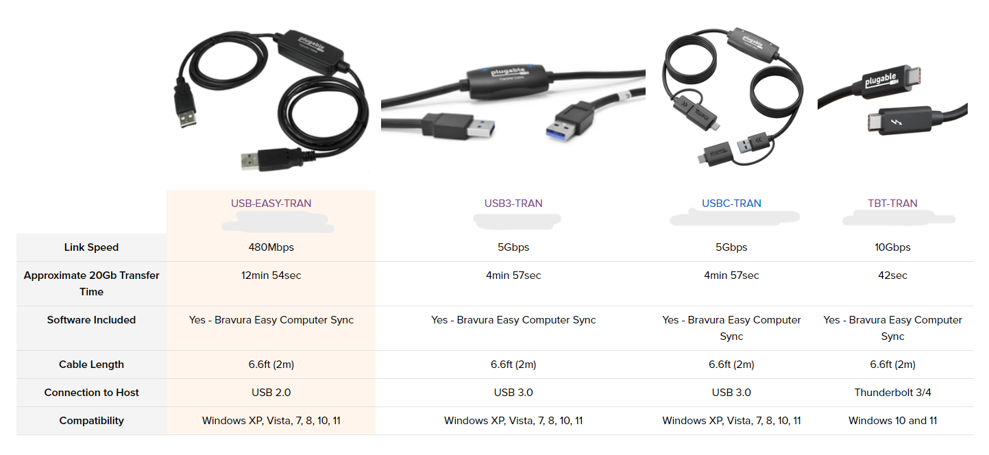 Our USB 2.0 Transfer Cables (USB-EASY-TRAN) give you the power to transfer your important files and data between two Windows PCs at a time. With convenient data transfer over USB 2.0, plug-and-play ease, and point-to-point simplicity and security, you can transfer your important files and data with confidence.