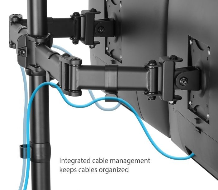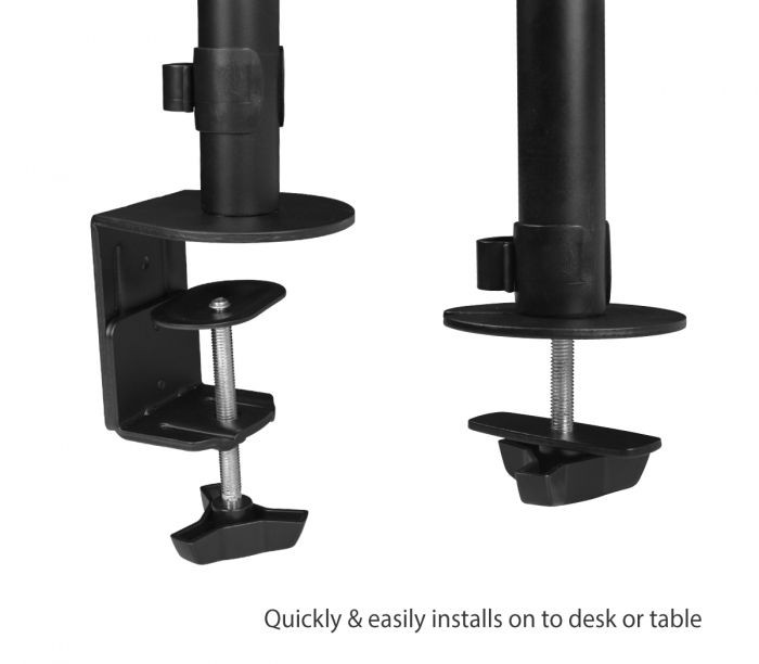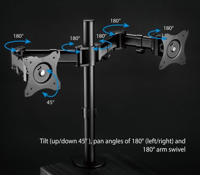 Full-motion Dual monitor desk mount – supports tilt, swivel and rotation for best viewing position