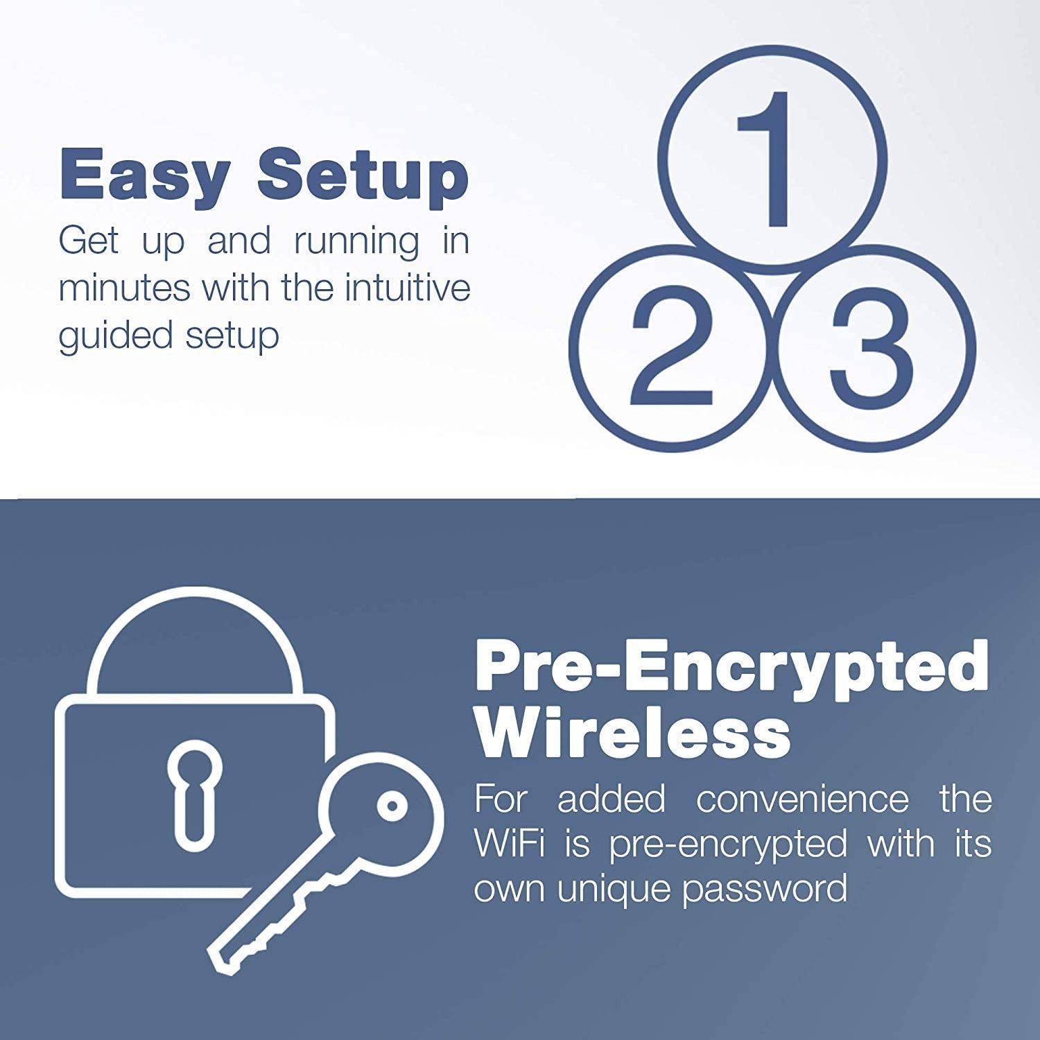 For added convenience the WiFi is pre-encrypted with its own unique password.