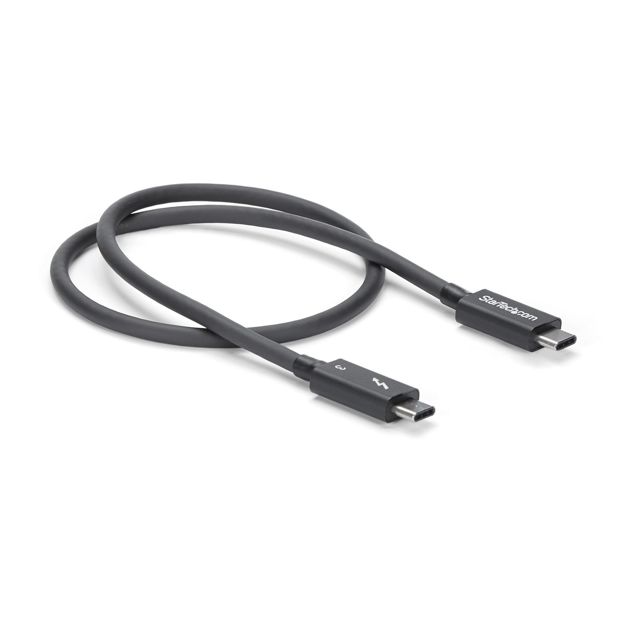 This Thunderbolt 3 cable delivers up to 100W of power for charging a laptop or powering a display, and 15W for bus-powered devices such as a hard drive enclosure.