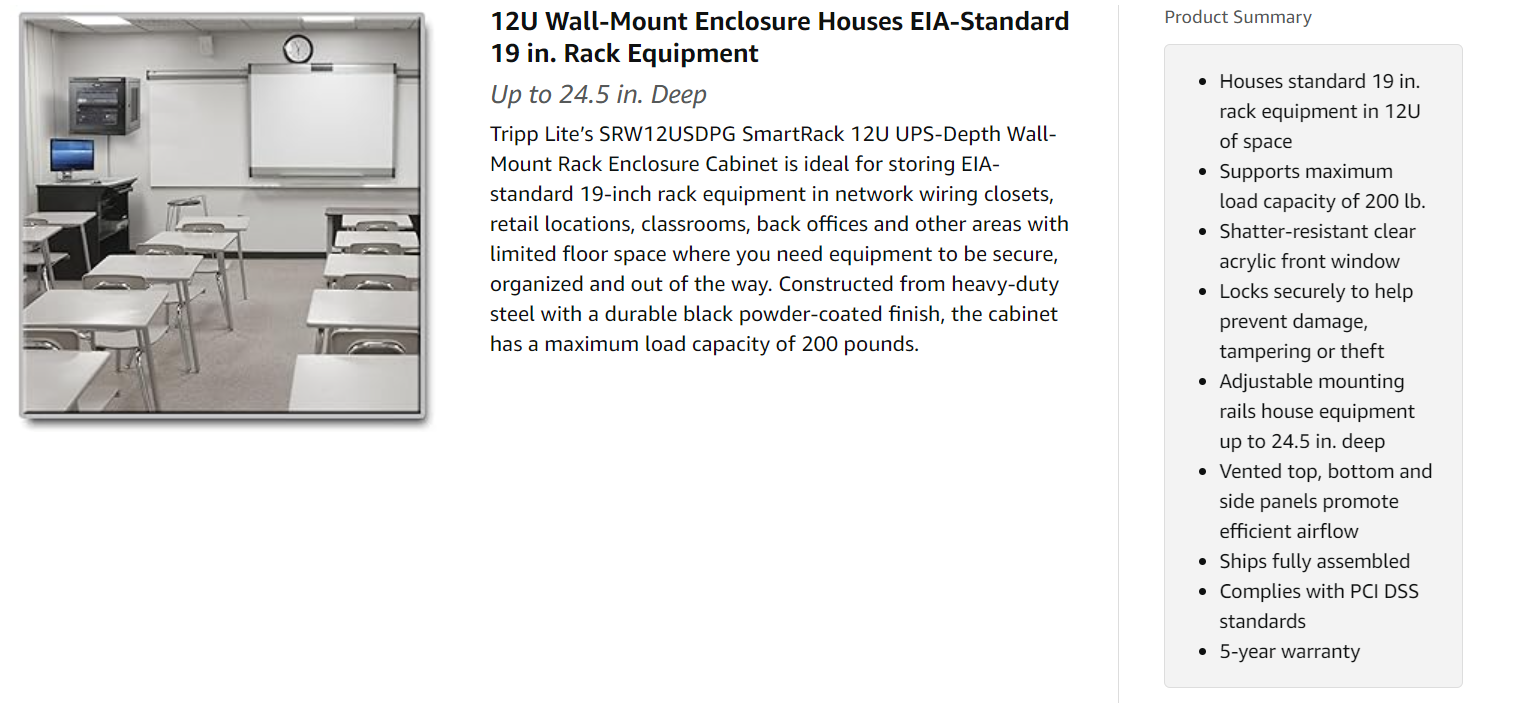 The SRW12USDPG provides physical equipment and media security required for PCI DSS (Payment Card Industry Data Security Standard) compliance.
