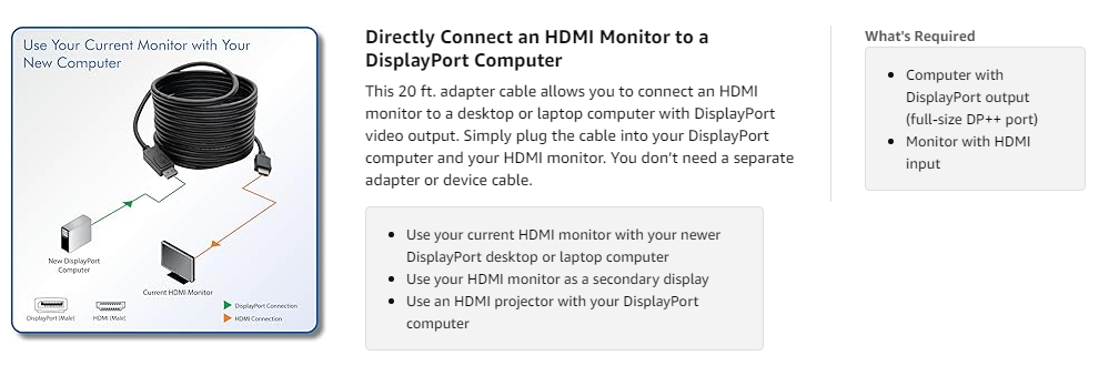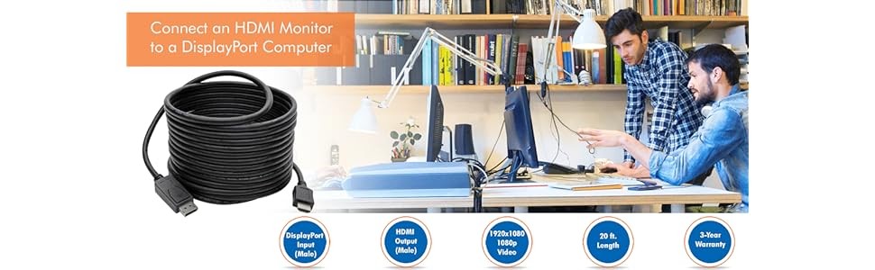 This passive adapter cable helps you save money by making your current HDMI monitor compatible with a DisplayPort-equipped computer. High-quality connectors provide maximum conductivity to ensure a clean, consistent video signal.