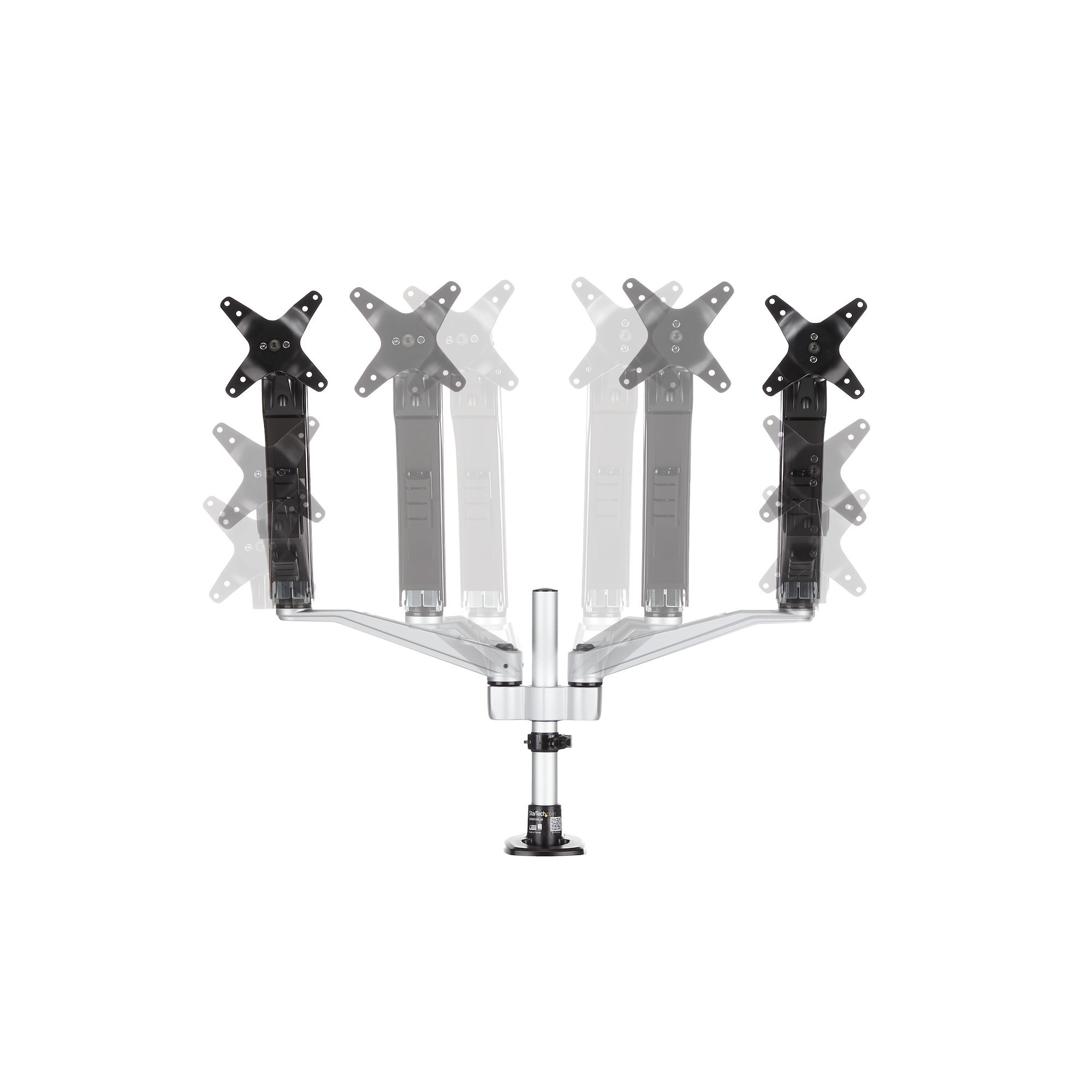 In a horizontal setup, the dual-monitor mount supports two monitors from 12" to 30". It's ideal for numerous uses including graphic design, photo editing and many others.