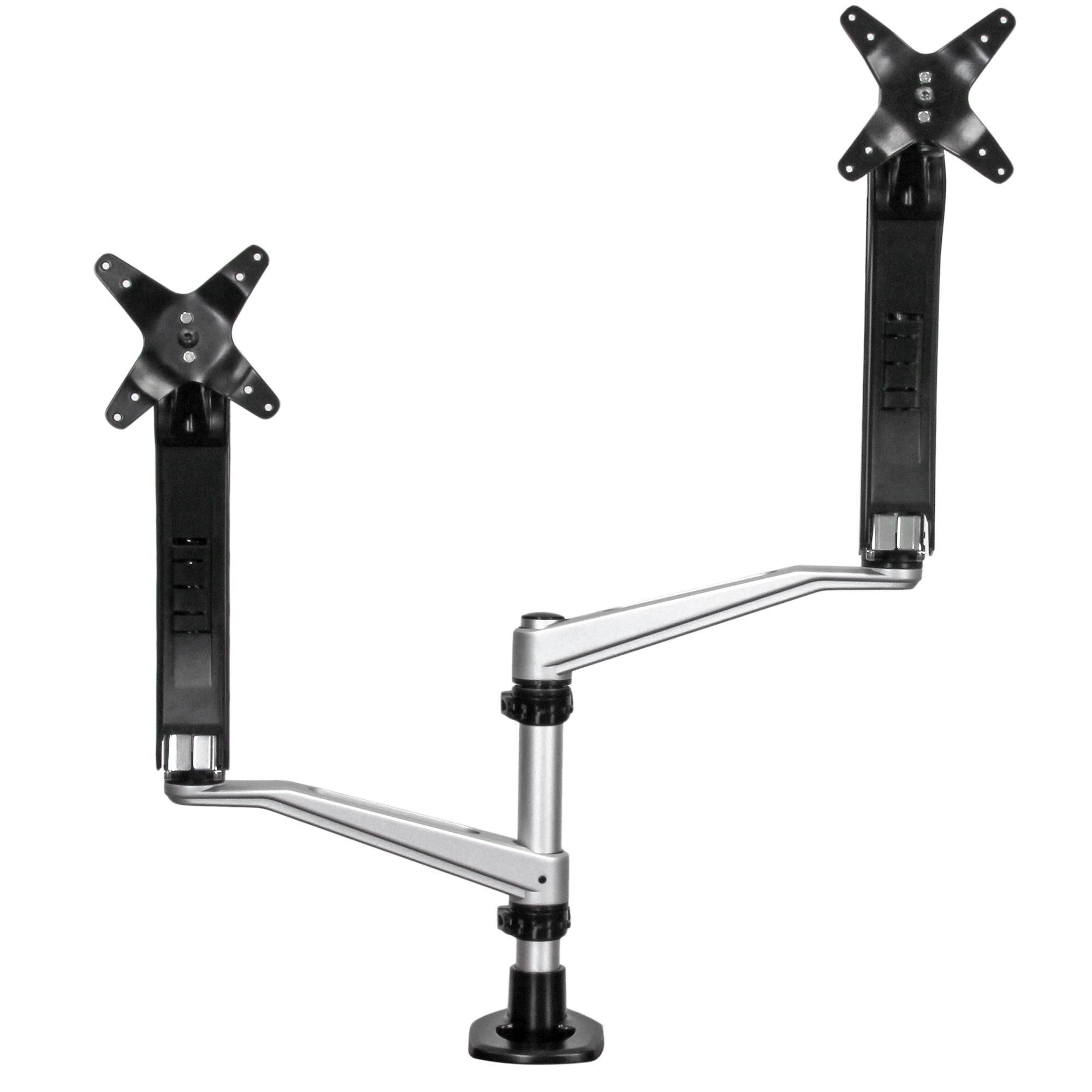 Customize your workspace like never before with this premium desk-mount dual monitor arm. It supports two VESA (75x75, 100x100) monitors, side-by-side or stacked. The full-motion articulating arms with spring-assisted height adjustment let you reposition your monitors with ease.
