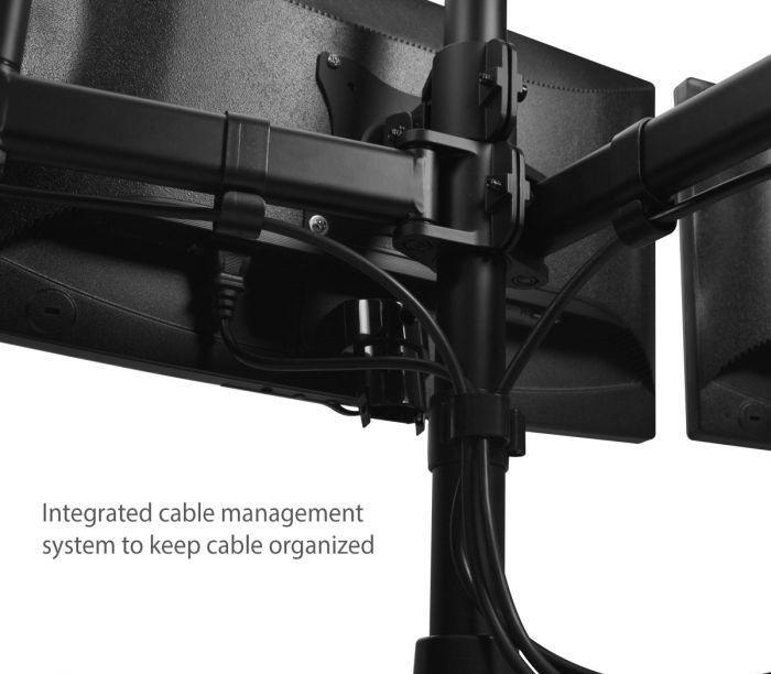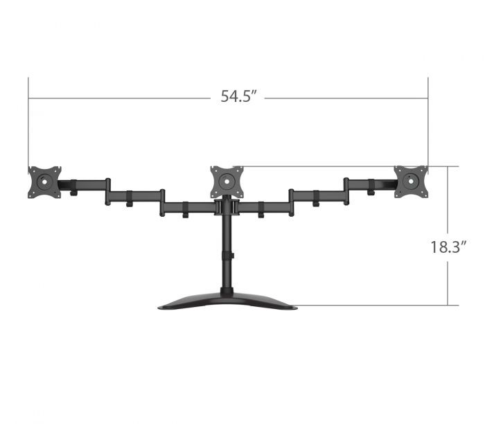 Durable steel articulating desk stand holds three flat panel monitors from 13” to 27” with weight load capacity up to 17.6 lbs (each)