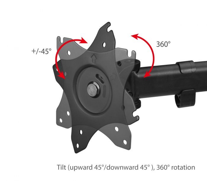 Supports tilt angles of +/- 45°, pan angles of +/- 45° and 180° arm swivel range for best viewing position