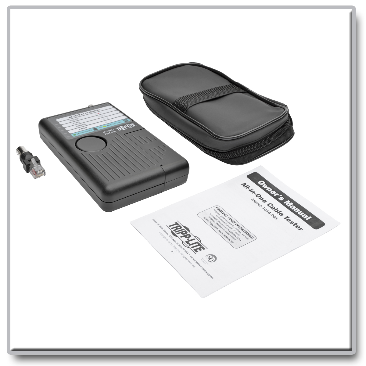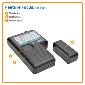 The all-in-one T014-001 Network Cable Continuity Tester is an essential tool for cable installers or anyone working in telecom or LAN environments. It allows you to test wiring continuity for Cat5e, Cat6, Cat6a, telephone, USB and coax cable assemblies with the press of a button. A combination of main tester unit and removable remote tester unit, the T014-001 identifies crossed wires, short circuits and open circuits in cables up to 600 feet (182.9 meters).