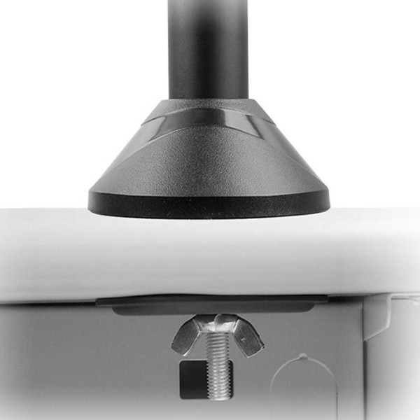 Stable desk stand designed for two monitors from 13" to 27" and up to 22 lbs each (10 kgs) - Side-by-side dual monitor stand - Conserves valuable desk space, VESA 75x75mm or 100x100mm, Cable Management, Flexible Adjustment, Comes with both interchangeable free standing and grommet bases