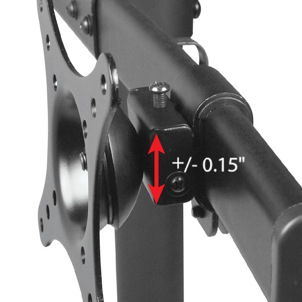The unique mounting bracket features removeable VESA plate for quick installation. Integrated adjustment knobs allow quick and easy horizontal and vertical monitor positioning