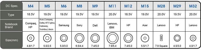Includes 11 self-regulating adapter tips, each tip can automatically adjust output voltage to support most 90W power compatible laptop or Ultrabook models from ASUS, Acer, Sony, Dell, HP, Lenovo, Fujitsu, Toshiba and more