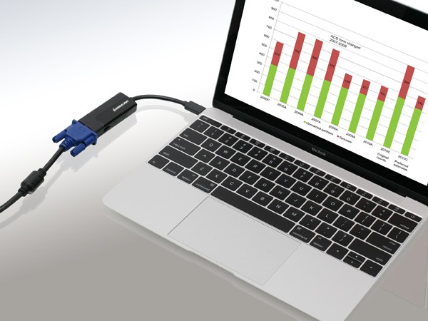 Output high definition VGA video from your USB-C enabled device straight to a VGA supported monitor, display or projector without compromising picture quality. If you've purchased a 2015 Chromebook [2] or MacBook, then you know that they feature USB-C technology. IOGEAR's USB-C to VGA adapter allows you to stay connected to your legacy display, TV or projector in order to avoid the hassle and high cost of purchasing new peripherals. With support for video resolutions of up to 2048x1152, the adapter lets you take full advantage of the enhanced video capabilities of USB-C to give you crystal clear picture quality.