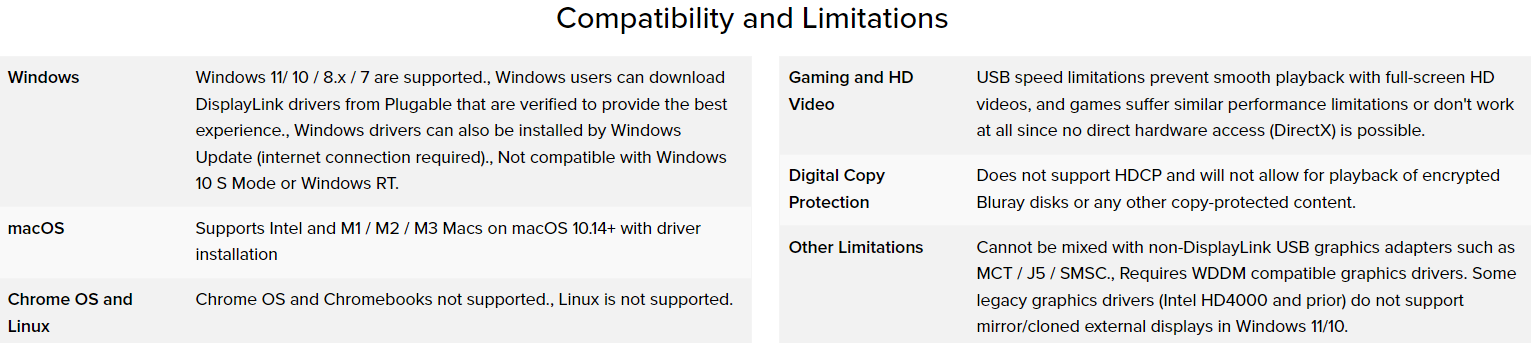 Featuring the DisplayLink DL-3500 graphics chipset, the Plugable UGA-2KHDMI allows you to an additional HDMI monitor to virtually any Windows laptop, desktop, tablet, or macOS system 10.14+ (one adapter required per monitor, up to six on Windows PCs and up to four on macOS). Multitask with a dedicated monitor for each document or application.