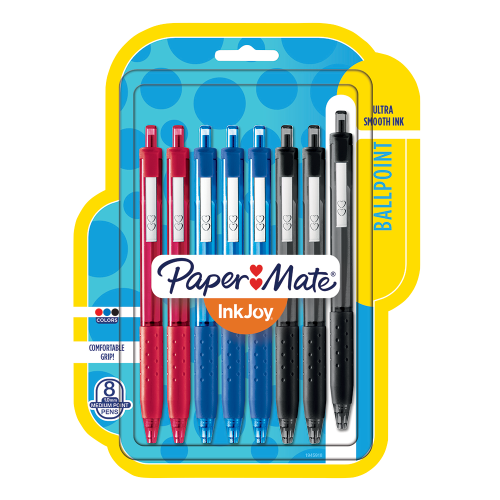 Spread joy with InkJoy! Reliable, fluid, and featuring a comfortable rubberized grip, Paper Mate InkJoy 300RT Retractable Ballpoint Pens deliver an effortless writing experience that never drags. Each of these retractable pens features a medium 1.0mm tip that’s ideal for situations where bold, precise lines are a must. And with ultra-smooth ink, Paper Mate InkJoy 300RT pens provide a steady and dependable flow that keeps up with your ideas. With Paper Mate InkJoy, there’s nothing to hold you back.