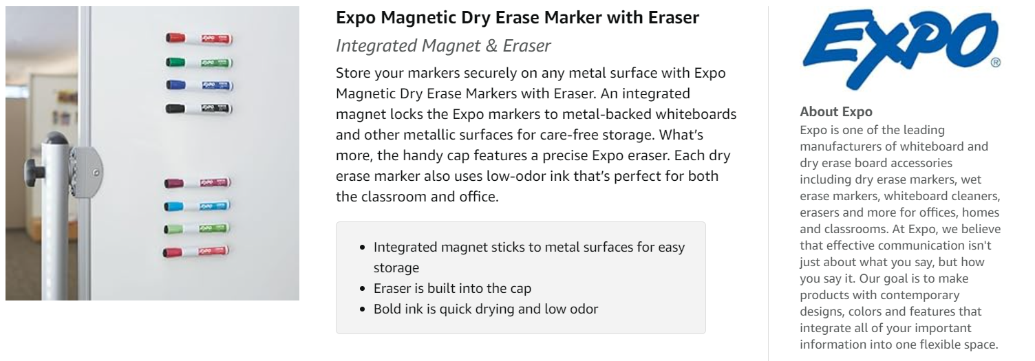 A handy eraser on the cap ensures you always have a precise Expo eraser when you need one.