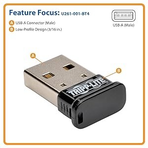 The U261-001-BT4 protrudes less than 3/16 of an inch (5 mm) from the USB port, so it can remain connected while your laptop is inside a sleeve, briefcase or backpack.
