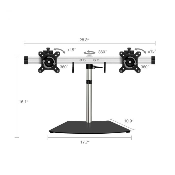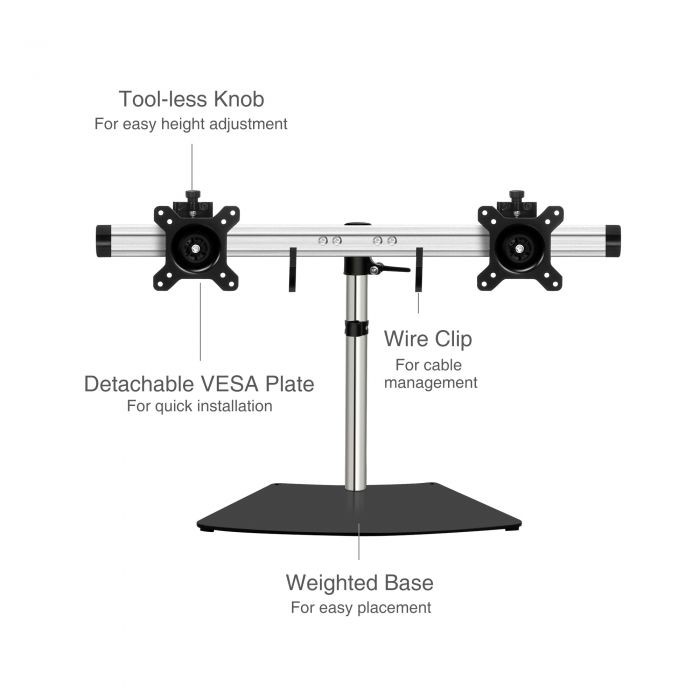 Premium side-by-side dual monitor desk stand conserves valuable desk space