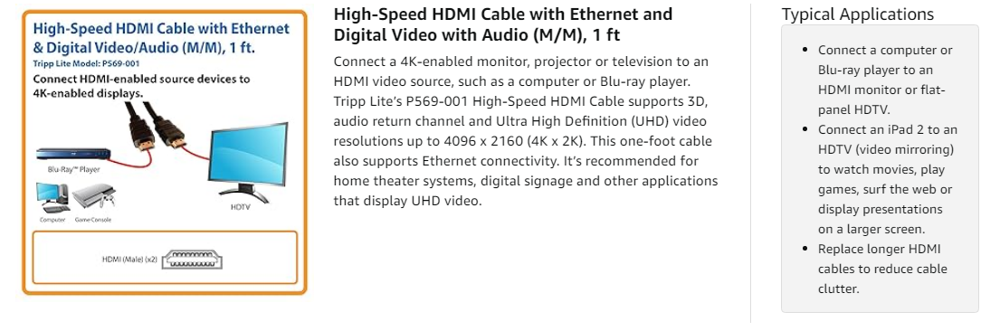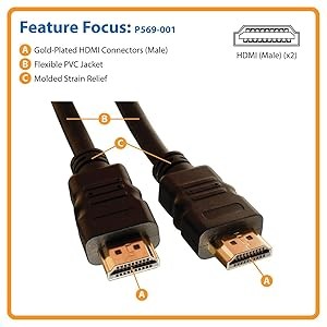 The P569-001 supports 4K x 2K UHD video resolutions and can successfully transmit 1080p signals at increased color depths and refresh rates. For data transfer, the P569-001 performs at speeds up to 18 Gbps. It’s also backward compatible with previous HDMI generations.
