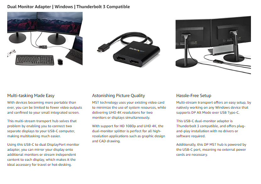 StarTech.com USB-C to DisplayPort Multi-Monitor Splitter - 2-Port MST Hub