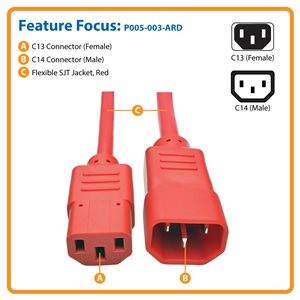 The P005-003-ARD features a red SJT jacket and fully molded red ends, allowing you to easily identify your connections in a crowded rack or workstation.