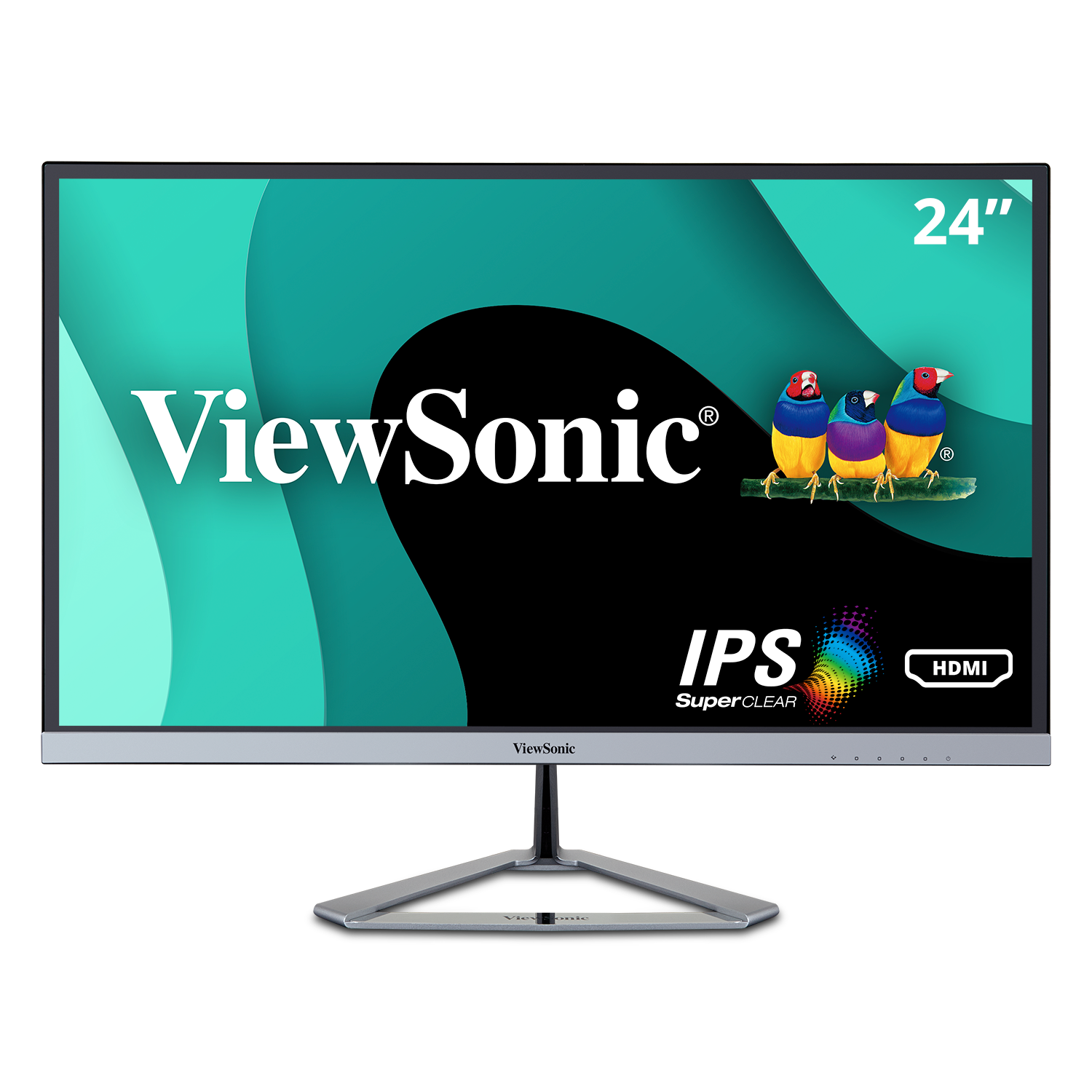 Style and substance go hand-in-hand with the ViewSonic ® VX2476-smhd 24" (23.8" viewable area) Full HD monitor. SuperClear ® IPS panel technology, wide viewing angles, and best-in-class screen performance deliver outstanding visual clarity great for vibrant entertainment and gaming. A premium ID includes an ultra-slim profile, unique desktop stand, and a sleek edge-to-edge frameless screen, that when combined with vivid 1920x1080 resolution and dual speakers, deliver an immersive viewing experience for home entertainment and multimedia applications. Versatile HDMI, DisplayPort, and VGA inputs keep you connected to your favorite devices, while the modern, flush-mount frameless bezel design makes a standout statement in any home.