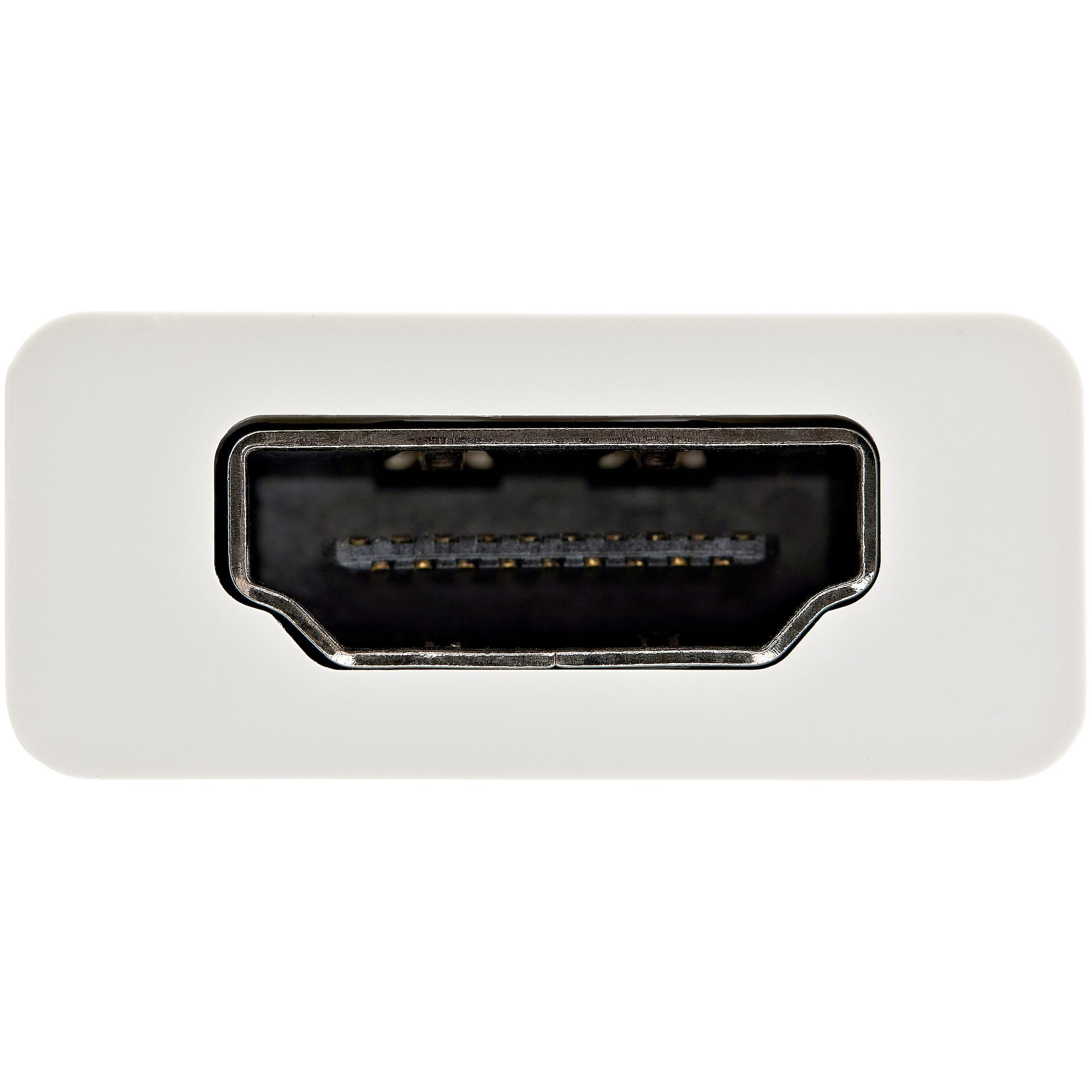 This USB-C™ to HDMI® adapter lets you output HDMI video and audio from a USB Type-C™ device, with support for Ultra HD 4K at 60Hz. The adapter works with USB-C devices that pass a DisplayPort video signal, and it's also compatible with Thunderbolt™ 3 ports. The USB-C video adapter features a sleek white design that looks great with your USB Type-C enabled MacBook or HP® ENVY 13.