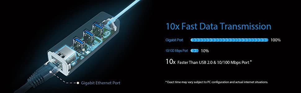 Instantly add 3 USB 3.0 Ports to any compatible devices. And support 10 times faster data transfer rate than USB 2.0. Backward compatible with USB 2.0/1.1 devices.