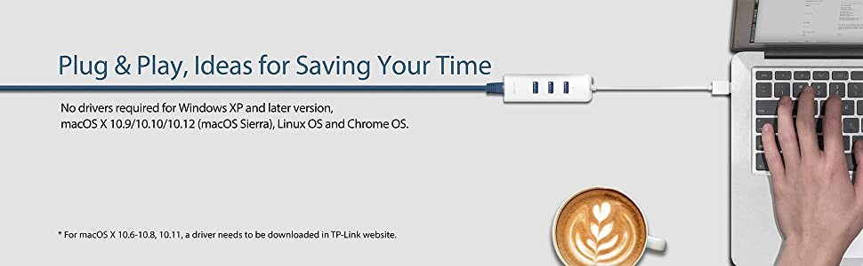 USB 3.0 to Gigabit Ethernet Adapter enables you to turn your laptop's USB port into a RJ45 Ethernet port to enjoy stable network connection.