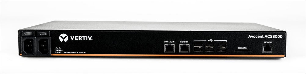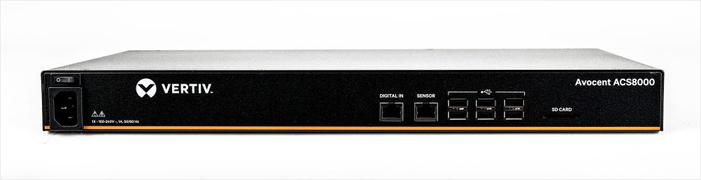 The Vertiv Avocent ACS8000 Serial Console Serverdelivers out-of-band equipment access in compliance with data centeraccess and security policies and best practices, such as IPsec VPN,customizable ACLs, and FIPS 140-2. It acts as a single point of access for allconnected devices, limiting entry points, enabling advanced user management,and providing event logging and notifications to record user activity.