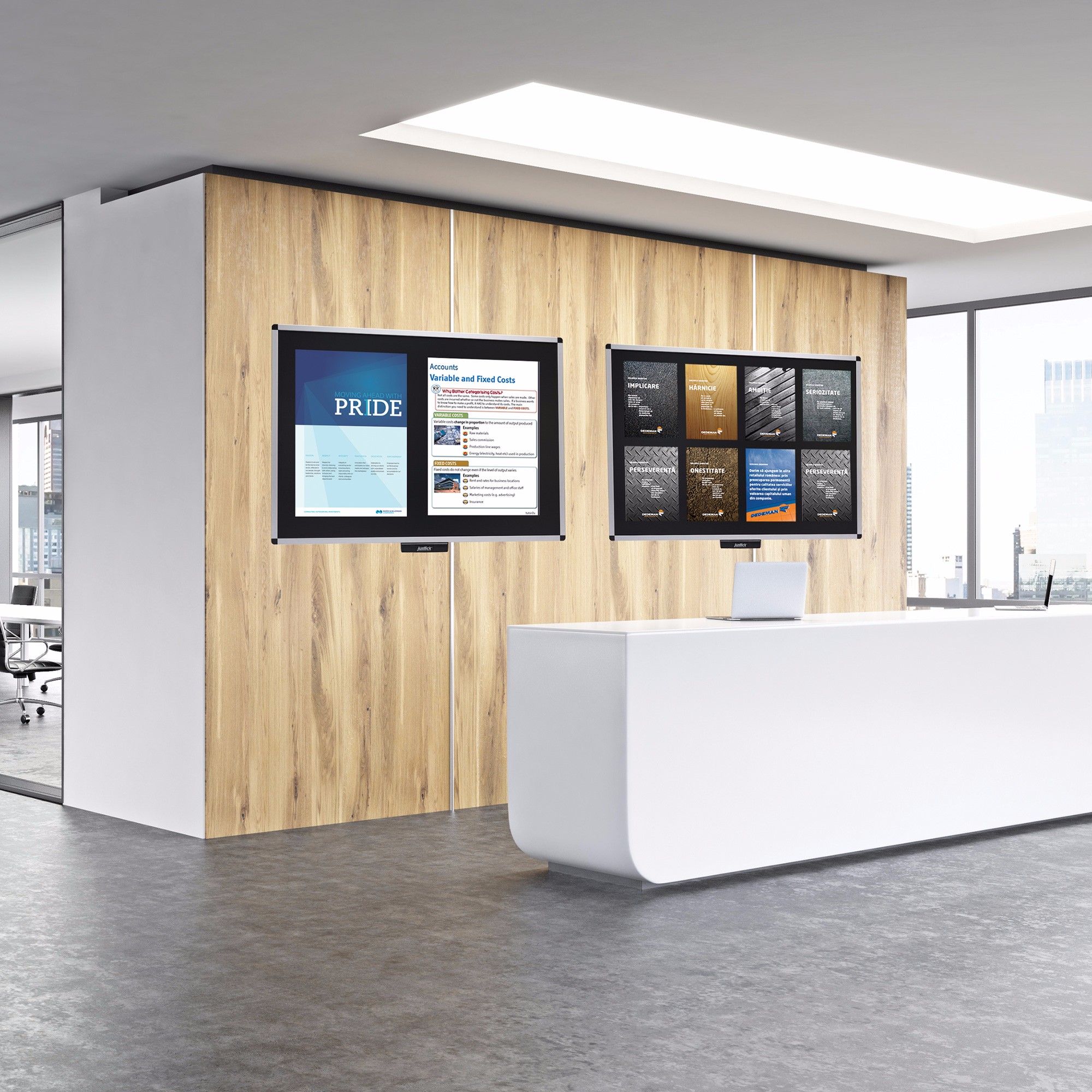 Say hello to Justicksurface technology! Say goodbye to push pins, magnets, tape or glue. Simplyplace your materials on the surface and they just stick! Choose from aluminumframes or frameless options to display anything from photos, notes, reminders, illustrations,training material and more!