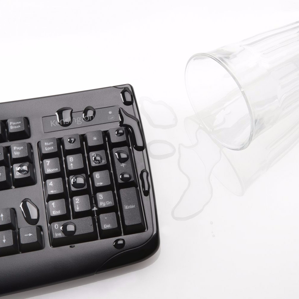 A thin membrane around the keyboard and underneath the keys ensures that any accidental spills from water, coffee, sodas or other liquids won’t damage the electronics and can be simply wiped dry.