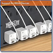 A dedicated outlet for each device’s power adapter eliminates wait times for charging.