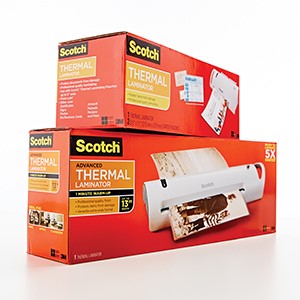 Scotch™ Advanced Thermal Laminator warms up in 1 minute. It has an extra-wide 13 inch input making it great for both small and big projects. Two heated rollers create high-quality professional, bubble and wrinkle-free results. The built-in carry handle stays cool and provides portability. Includes auto-shut off, touch button controls and two heat settings for both 3 mil and 5 mil pouches. It comes with 20 letter-size, photo-safe thermal laminating pouches.