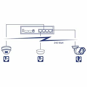 A 240 watt PoE power budget supplies up to four Power over Ethernet devices with PoE (15.4 W), PoE+ (30 W) or Ultra PoE (60 W) power